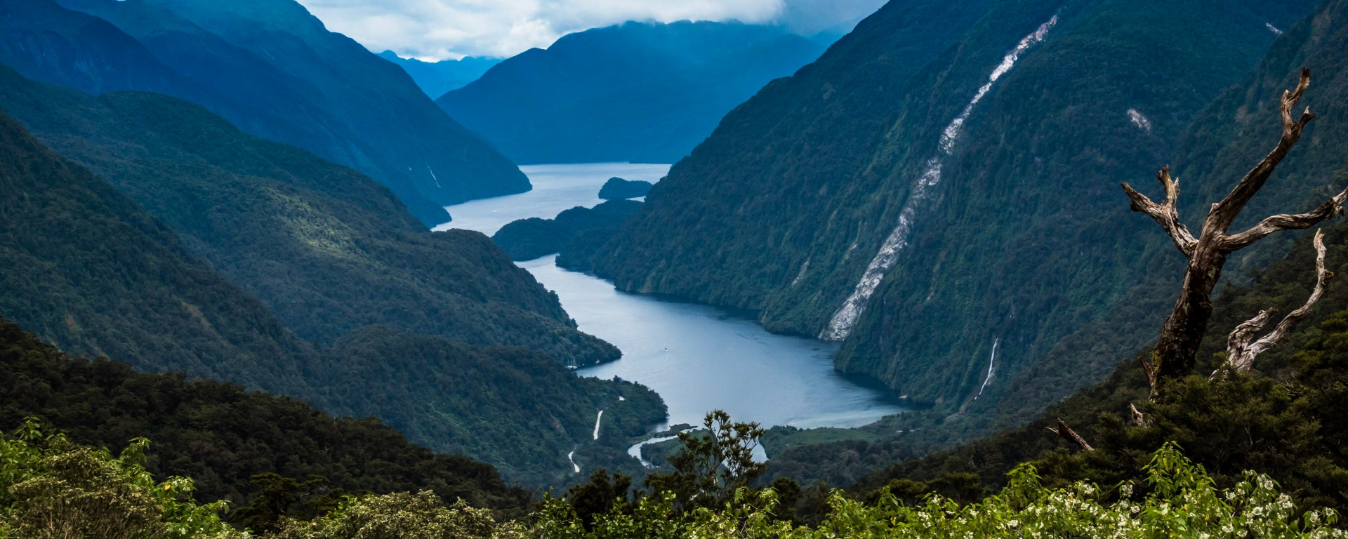 In the morning it was a short drive from Te Anau to Manapouri where we crossed the lake to West Arm (next to the hydro electric power station) where we then bussed to the mooring point of Doubtful Sound. The road down to the Sound wad built specifically for the building of the pipeline that goes between Lake Manapouri and Doubtful Sound and is an interesting drive.